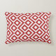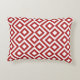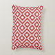 This stylish red and white geometric pattern accent pillow features an original ornamental design. White meanders angle around red diamonds containing white diamonds. Red zigzags provide subtle separation between the winding paths.