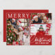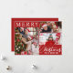 Red And White Merry Christmas Three Photo Festive Holiday Card