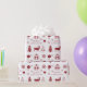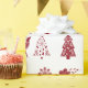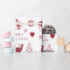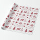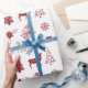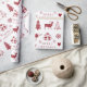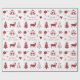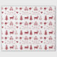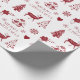 Cute red and white scandinavian pattern with deer, Christmas trees, hears and birds.