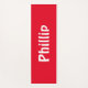 A red and white yoga mat, this modern design features a red background with your name written in white trendy text. Great for a workout, order yours today!