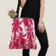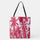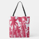 Ladies bag in a bright red and white palm tree leaf design. Attractive natural tree silhouette pattern. Bold graphic image is made up of red and White Palm Trees.