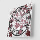 Red and white paper flowers square wall clock