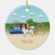 Red And White Papillon With Agility Equipment Ceramic Tree Decoration