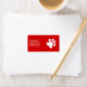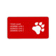 This label has a silhouette of a white paw print on red background colour. Next to the paw there is a customisable text area for a name and address. The red background colour can be changed to any other colour under customisation.