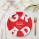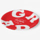 GRAD in bold white lettering curves around the edges of these red graduation party paper plates - available in 2 sizes. Congratulations above the name of your graduate and the Class of below. The perfect addition to your table decor for upcoming grad parties. **TIP: Click on CUSTOMIZE button; click on COLOR box on top right; enter your colour hex code in the #xxxxxx box to match your school colours. SEE ENTIRE COLLECTION of pre-done colour combinations and more in our store.