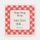 A retro restaurant red and white plaid pattern of checks and stripes in editable script and block letters for your name or event title and room for more information.