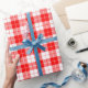 A wrapping paper designed with a red and white plaid pattern. Customise the white background among other options.