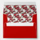 Beautiful red and white poinsettia flowers cover the inside of this Christmas envelope, with a bright red exterior.