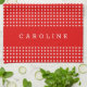 Red and White Polka Dot Pattern Personalised Name Tea Towel