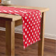 Red and white polka dot pattern table runner. Custom background colour. Great for wedding party, bridal showers, birthdays and more.