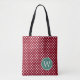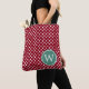 Red and White Polka Dot With Deep Teal Monogram Tote Bag