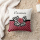 Get girly with this cute red and white polka dot pattern square throw pillow with a trendy black and white chevron bow and a chic red ribbon rose. Personalise this red and black retro meets modern design by adding the name of your teen girl. Flat printed image, NOT actual rosette ribbon and bow.