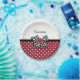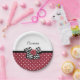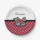 Get girly with these cute red and white polka dot pattern paper plates with a trendy black and white chevron bow and a chic red ribbon rose. Personalise this red and black retro meets modern design by adding the name of your teen girl. Flat printed image, NOT actual rosette ribbon and bow.