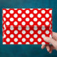 A lovely bright red and white polka dot pattern. You can delete the image on the exterior if you'd prefer a white envelope. Also you can use the colour code F00000 for red.