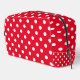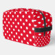 Red and white polka dots pattern toiletry bag. Add your own personalised text or image. Cute polkadot print design. Dots can be made smaller or bigger. Big and small options.