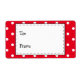 Red and white polka dot pattern background. A white rectangle with a text template reading To... From... in black lettering.