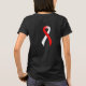 Red and white ribbon with "support awareness" written on it. The red and white ribbon is associated with Head and Neck Cancer Awareness in April, Oral Cancer Awareness in April, DVT Awareness, Squamous Cell Carcinoma Awareness, Aplastic Anaemia Awareness, Hereditary Hemmorrhagic Telangiectasia Awareness, and MDS and other Bone Marrow Diseases (AA & MDSIF Designation) Awareness.