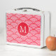Red and White Scallop Pattern Monogram Metal Lunch Box