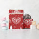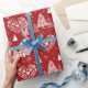 Red and White Scandinavian Heart & Christmas Tree Wrapping Paper