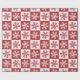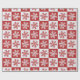 Wrapping paper with a seasonal design - repeating pattern of red and white snowflakes.