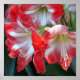 Three huge, red and white stripe Amaryllis blooms.  Hang in a floral grouping with the Columbine and Clematis.
