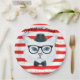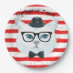 Red and White Stripe Hipster Cat Paper Plates