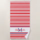 Red and White Stripe With Navy Blue Monogram Beach Towel