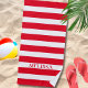 Make a statement on your next beach vacation with our Red And White Striped Name Cabana Stripe Beach Towel. This personalized beach towel is perfect for lounging by the water in style. It also makes a great bridal party or bridesmaid gift that your loved ones will cherish for years to come.