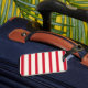 Red and white striped luggage tag for a cute, modern and elegant nautical bathroom.