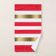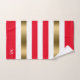 Red and White Stripes Gold Accents, Monogram Bath Towel Set