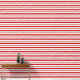 This wallpaper has stripes in red and white stripes that can be applied horizontally or vertically.