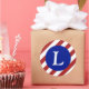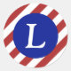 Red and White Stripes Pattern + Royal Blue Circle Classic Round Sticker