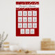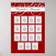 Choose any colour you want for your wedding or annivesary dinner party seating chart. (Change background colour in customisation options) Easily customise the layout with the names of your guests. You can seat beween 6 and 9 guests at each of table, meaning that this chart can help you to seat between 90 and 135 guests. The red background colour is customisable. You can make this design perfectly match the colour scheme of your event. Why not frame one as a souvenir? We've picked a standard size for reasonabily priced framing.