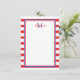 These preppy monogrammed note cards feature nautical red and white stripes with a border of navy blue.  Personalise the matching red and blue monogram with your choice of name and initial.