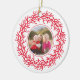 Add your own photo to this red and white modern Scandinavian festive wreath holiday design. Makes a lovely family keepsake. Photo credit: Photography © Storytree Studios, Stanford, CA