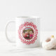 Add your own photo to this red and white modern Scandinavian festive wreath holiday design. Makes a lovely family keepsake. Photo credit: Photography © Storytree Studios, Stanford, CA