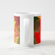 Speciality Mug colourful composition with curly tulip bright and shiny two colours. The image is a close capture, or macro shot, that exposes very clearly the petals sophisticated architecture with finely incised edges, thin texture lines and complicated red yellow intrications. The incised edges and vibrant colour palette remind of a sparkling parrot, that's the origin of the other name of the flower, parrot tulip. Also known as "curly Sue" or fringed tulip, this lovely flower shows intense, flamboyant colours almost glowing under the mid day sunrays of May.