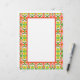 Bright and cheerful astral patterned stationery featuring lime green, red and yellow with text box.