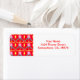 Red and Yellow Floral Tile Pattern address labels. Customisable labels with a pink flower and three green vines in the middle with yellow scrolling design on the sides on a red background pattern.