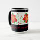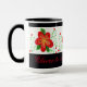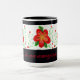 Designer black coffee mug, with red flowered print. The text can be personalised to your own inspirational message, or text is removable. Beautiful personalised custom gift idea.