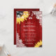Red and Yellow Sunflower Rustic Wood Lace Wedding Invitation