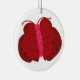 I painted my own uniquely original red butterfly with red eyes, red angel wings and feathers, red markings, tufts of red fur and beaded pink halo around and along its body shape and antennae. A fantasy artwork.