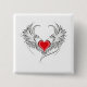 Artistically painted red heart with angel wings grey, decorated with black smooth contour.