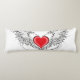 Artistically painted red heart with angel wings grey, decorated with black smooth contour.