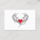 Artistically painted red heart with angel wings grey, decorated with black smooth contour.