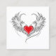 Artistically painted red heart with angel wings grey, decorated with black smooth contour.