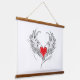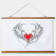 Artistically painted red heart with angel wings grey, decorated with black smooth contour.