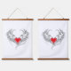 Artistically painted red heart with angel wings grey, decorated with black smooth contour.