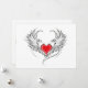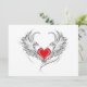 Artistically painted red heart with angel wings grey, decorated with black smooth contour.