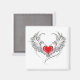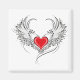 Artistically painted red heart with angel wings grey, decorated with black smooth contour.